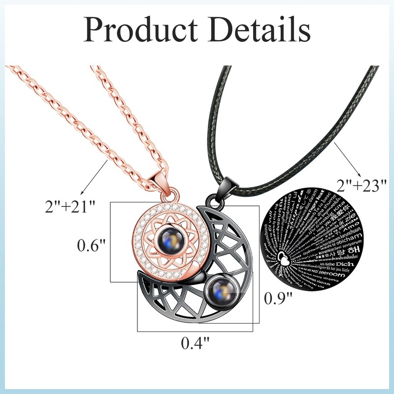 - ❤【100 languages】❤This Projective Necklace used nano-micro technology to engrave "I Love You" in 100 different languages into the stone. When you shine a light through it and project it on a wall, or use a phone camera to target the stone, it will project the 100 languages of I love you.