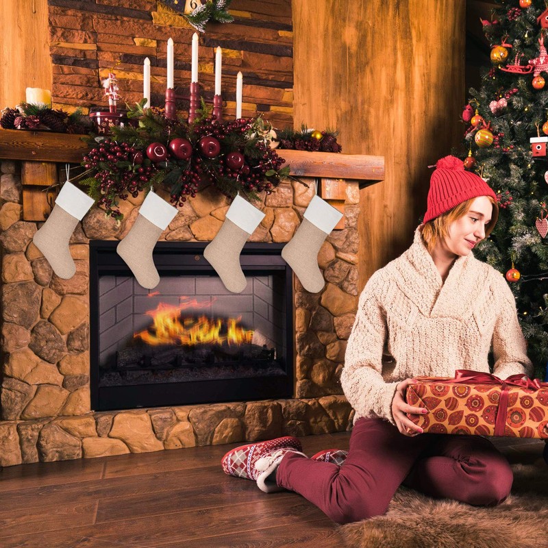 Sunshane burlap Christmas stockings Xmas fireplace hanging stockings decoration stockings for Christmas decoration DIY craft Features: The burlap Christmas stockings are made of cotton and linen, strong and durable, you can use them for a long time, suitable for Christmas and other special occasions. With proper size, it has enough space to hold Christmas presents and candies. Make DIY crafts: Plain surfaces of the stockings can be find except the cuff part, which allows you DIY your stockings by yourself, you can write or paint something on them to decorate and make them unique. Wide applications: These stockings are great Christmas home decorations, they can be hung on a Christmas tree, fireplace, window, or any place you want to decorate, also you can give them to the children as gifts. Specifications: Cuff to heal: approx. 40 cm/ 16 inches Cuff width: approx. 18 cm/ 7 inches Heal to toe: approx. 29 cm/ 11.5 inches Material: cotton and linen Color and shape: as pictures shown Note: Due to manual measurement, the size may have a certain error. Due to the different batches, and the difference between different monitors, there may a slight color difference exist.