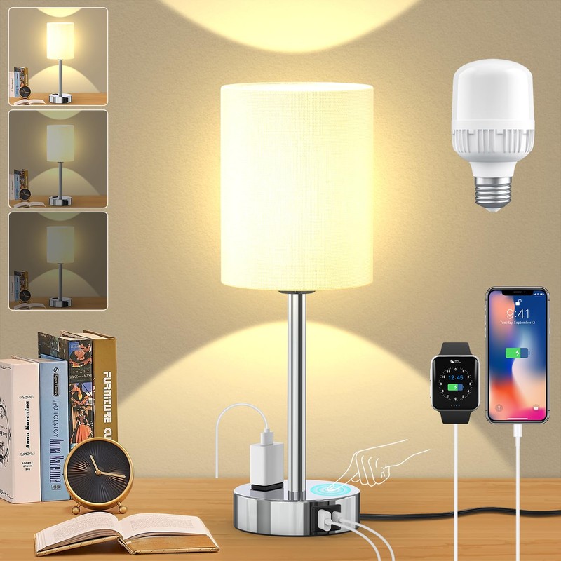 - Puertos de carga USB y USB-C y toma de corriente: ¡alimenta 3 dispositivos a la vez! Con un puerto usb-c (5V/2.1A) y un puerto usb-a (5V/2.1A) y una toma de corriente (120v) en la pequeña lámpara de mesa de noche para una carga rápida, conseguir sus teléfonos, pad, ordenadores portátiles, auriculares, altavoces, auriculares y otros aparatos electrónicos completamente cargada todo de una sola lámpara de mesa pequeña, no importa si la lámpara de mesa de lado de la cama está encendido o apagado