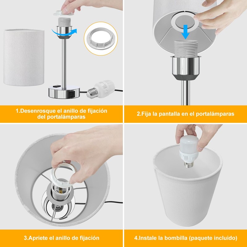 - LED Bulb Included : Usted recibirá una bombilla LED. una pantalla de tela de lino libre de instalación, un cuerpo de lámpara estable y una base de metal de control táctil. El brillo es equivalente a la bombilla incandescente de 60W, pero con menos salida de calor y menos consumo de energía, lo que puede permitirle completamente usar las lámparas de dormitorio para mesita de noche para leer, estudiar o trabajar.
