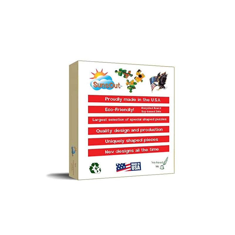 • Warranty: SunsOut puzzles being made in the USA ensures high manufacturing standards include a worry-free guarantee ensuring any issues with missing or damaged pieces are resolved, reflecting SunsOut's commitment to quality and customer service.