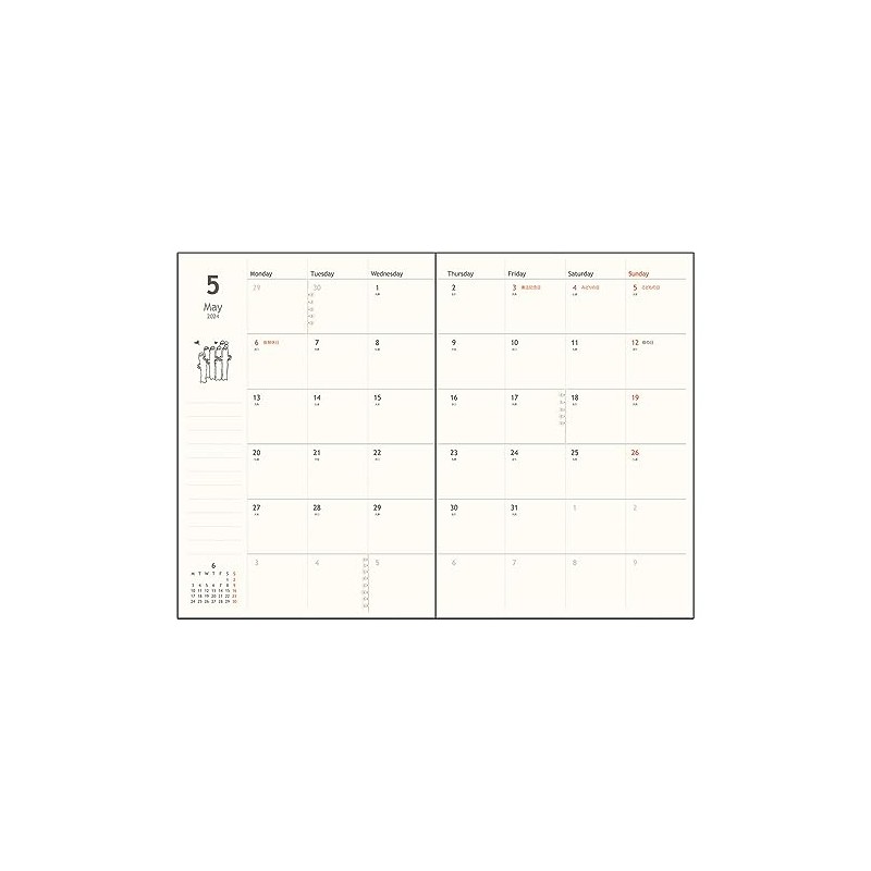 - Contents: Pen holder, calendar, yearly plan, monthly schedule (6 days included) memo, world map, route map