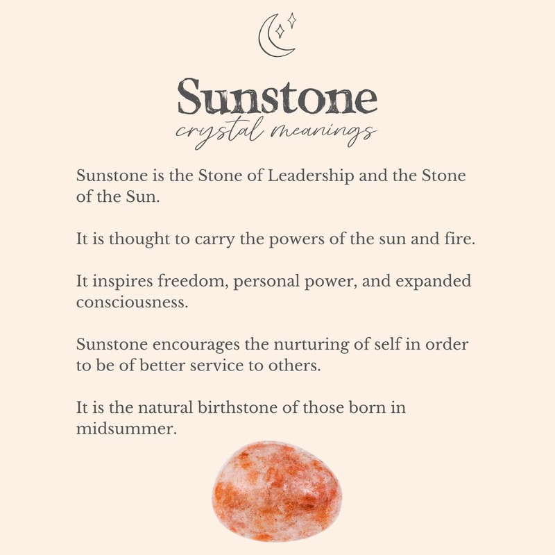 - Sunstone is the Stone of Leadership and the Stone of the Sun, it encourages the nurturing of self in order to be of better service to others