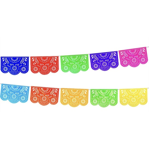SUNT Mexican Papel Picado Style Plastic Binding ""Floral Flash"" Design for Parties and Events of All Occasion | Plastic | Set of 5 Strips