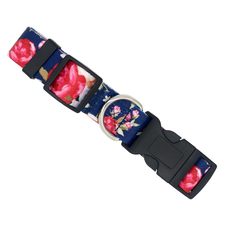 Suntallic Dog Collar with Fashion Pattern Print on 1 Inch Strap, Adjustable Basic Dog Collar with Metal D Ring for Small Medium Large Dogs, (Floral, L)