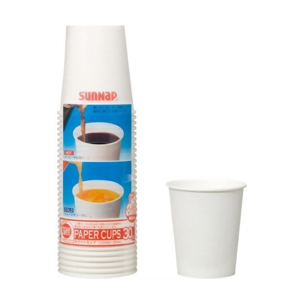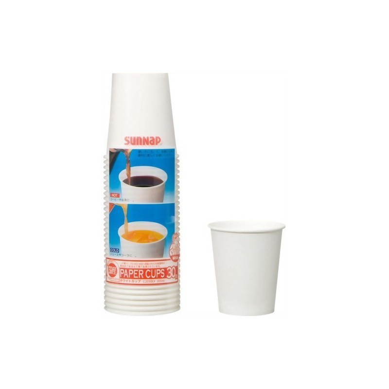 Sunup C2030EX Disposable Cups, White, 3.0 x 3.0 x 8.6 inches (7.5 x 7.5 x 21.8 cm), White Cup, Pack of 30