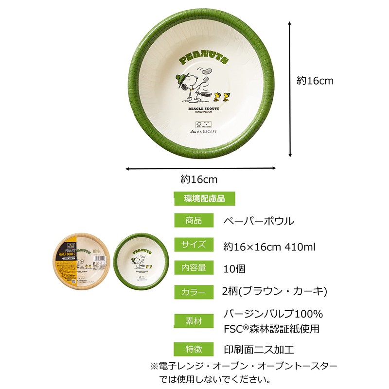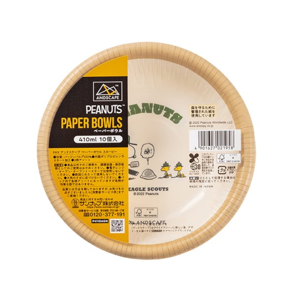 Sunup Paper Bowls, FMX & Scape, Snoopy, 14.1 fl oz (410 ml), 10 Pieces, Assorted Patterns