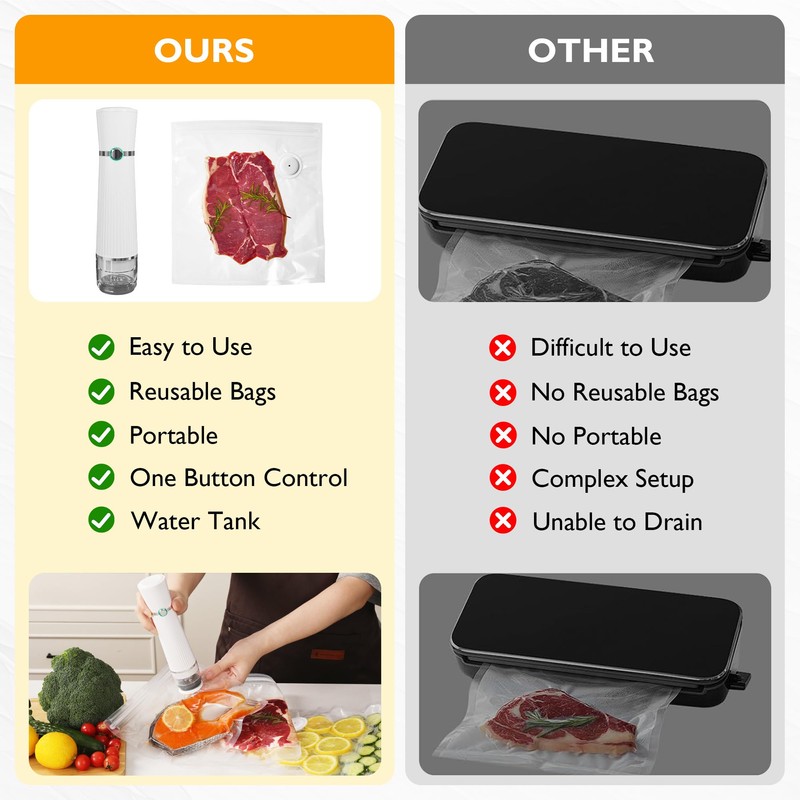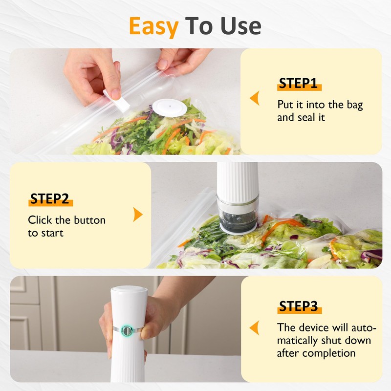 - Perfect for Home, Kitchen, or Travel:This food preservation system helps reduce spoilage and prevent freezer burn by removing excess air and sealing in freshness. Great for extending shelf life of meat, fruits, vegetables, and more. Ideal for families, meal preppers, or anyone who wants to cut down on waste and keep food tasting great longer.