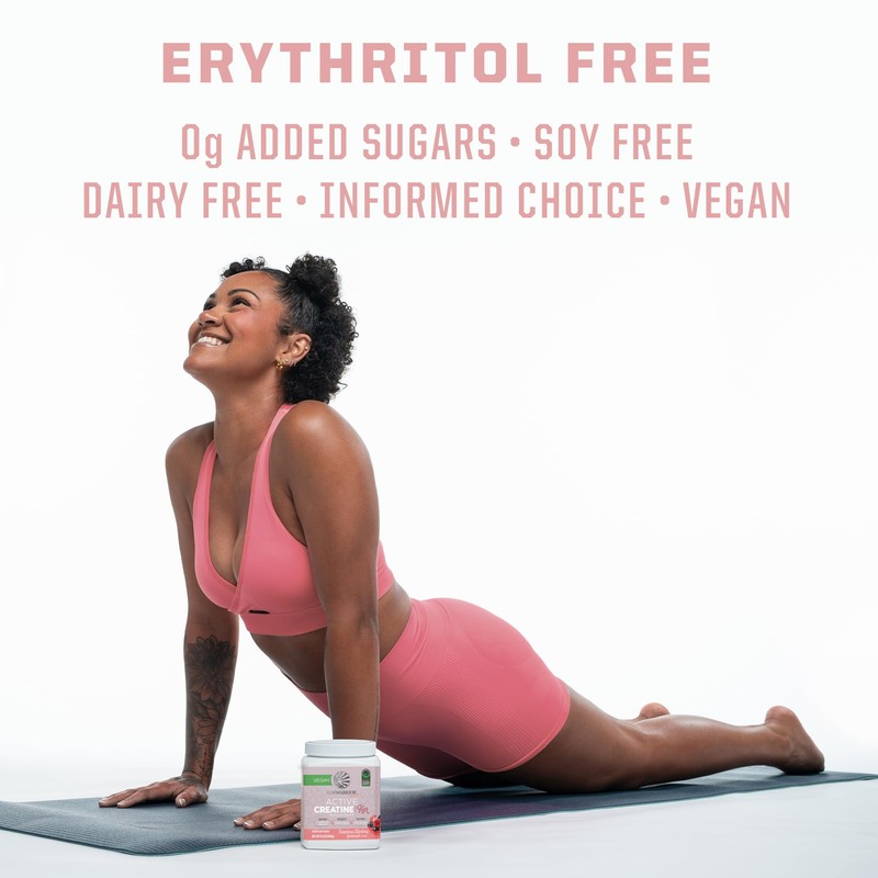 Sunwarrior Creatine for Women Monohydrate Powder Micronized Pre Workout Recovery Supplement Support Muscle Building Strength Training Cognition | Vegan and Easily Mixes 50 Servings, Raspberry Lemonade