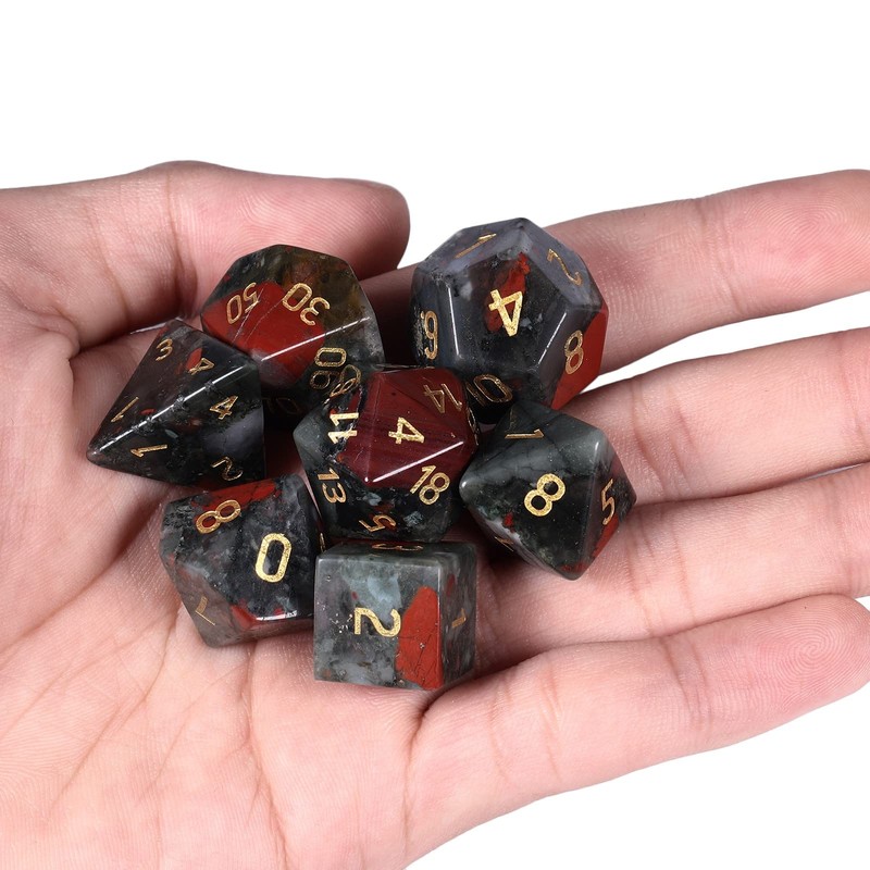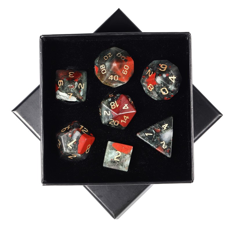SUNYIK 7 PCS Polished Crystal Stone Polyhedral DND Dice Set for for RPG MTG Table Games, DND Game Dice Polyhedral Dungeons and Dragons for Office Home Decoration, Dragons Blood