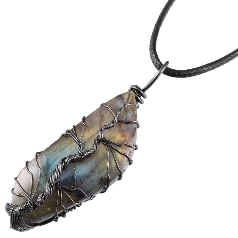 - Handmade Wire Wrapped Stone Pendant: Outside the polished labradorite crystal pendant is the copper plated gun-blacked, then wrapped by hand designed as different shaped. Special designed crystal pendant necklace is suitable from any occasion to wear. For those who often need to work overtime, wearing labradorite can help to replenish your body without knowing it.