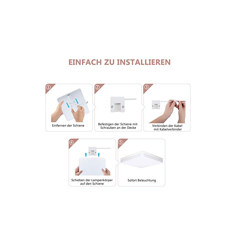 - Einfache Montage ? Die Montagemethode dieser LED-Leuchte ist einfach, Wenn Sie sie nach dem Lesen der Anleitung nicht installieren k?nnen, k?nnen Sie den Elektriker um Hilfe bitten, sie einfach auf die Montageschiene schieben und Sie k?nnen sie sofort verwenden.