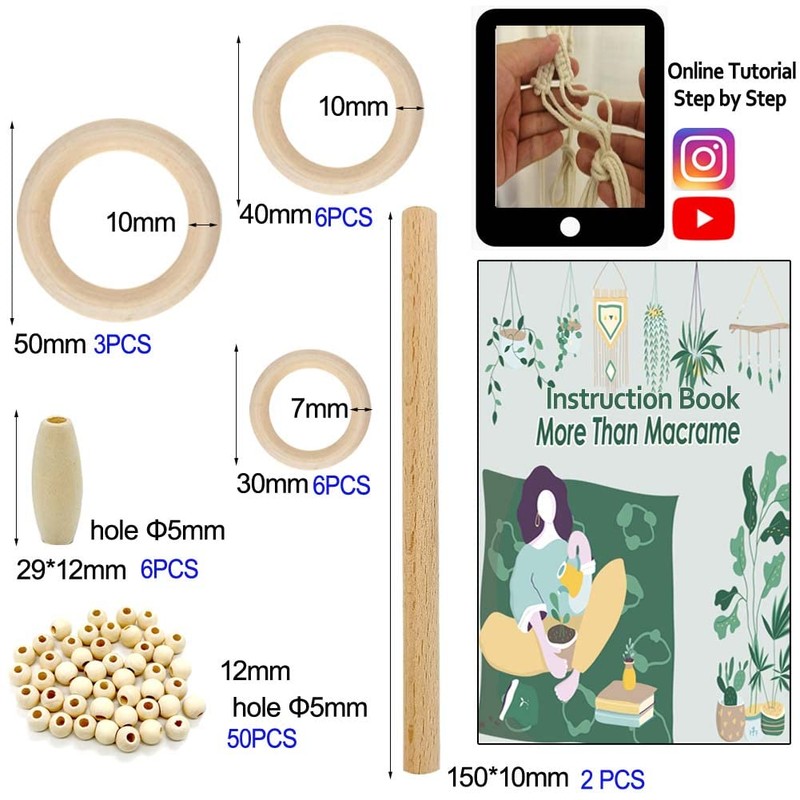 - 🧵 【All in 1 Macrame Beginner Kits】: Including 3mm macrame cord (109 Yards), 50 pcs wood beads for craft, 15 pcs wood rings, 2 pcs wooden sticks. All macrame accessories you need to make macrame plant hanger,macrame wall hanging adults craft kit