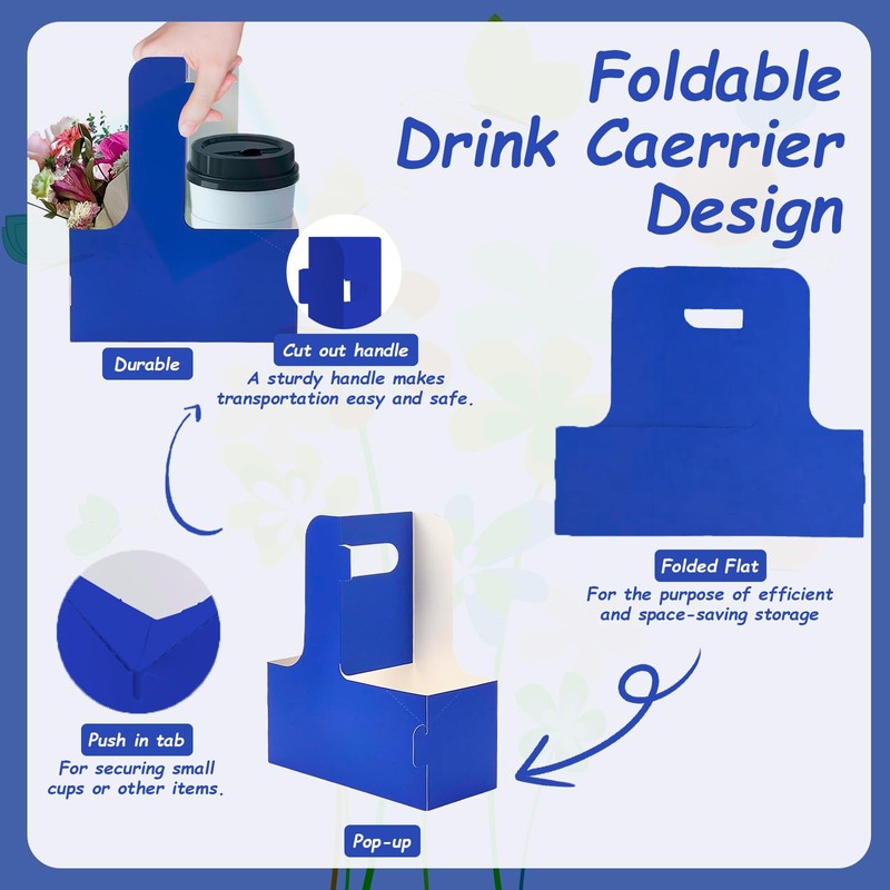 - High-quality material: Made of 350 Made of 100 grams of paper, the beverage holder is sturdy and durable, ensuring safety, reliability and durability. The waterproof function ensures that the contents will not accidentally spill. This beverage cup holder is ideal for takeout or take-out drinks, and can safely transport drinks and food