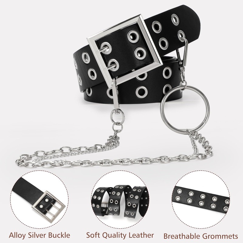 - ★【Great Gift for Women and Men】 This unisex grommets studded belt with a nice removable chain is enclosed in an lucky bag. A Ideal gift for families, wife, husband, mom, girlfriend, daughter, friends at Halloween/Christmas/Birthday/Thanksgiving.