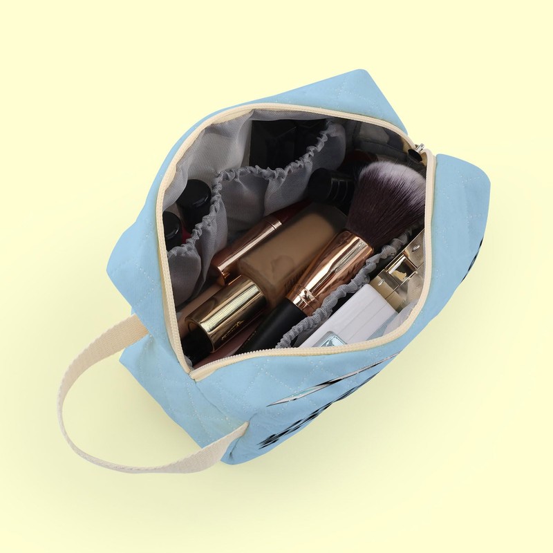 - 1. Tooth Care Stuff-Printed Designs Vibrant Tooth Care Stuff patterns heat-transferred onto plush quilted polyester – eye-catching style for makeup lovers and fashion-conscious adults.