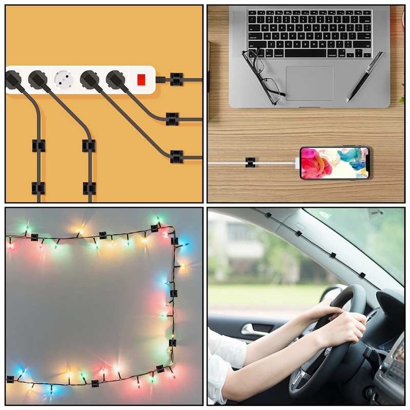 - Self-Adhesive Clips: Sticky cable holder clip with self adhesive pad can grip the surfaces stably which can be removed easily without damage to the desktop and with no residue leaving on the surfaces.