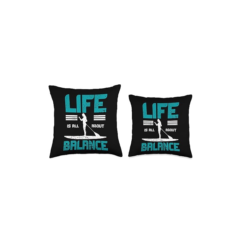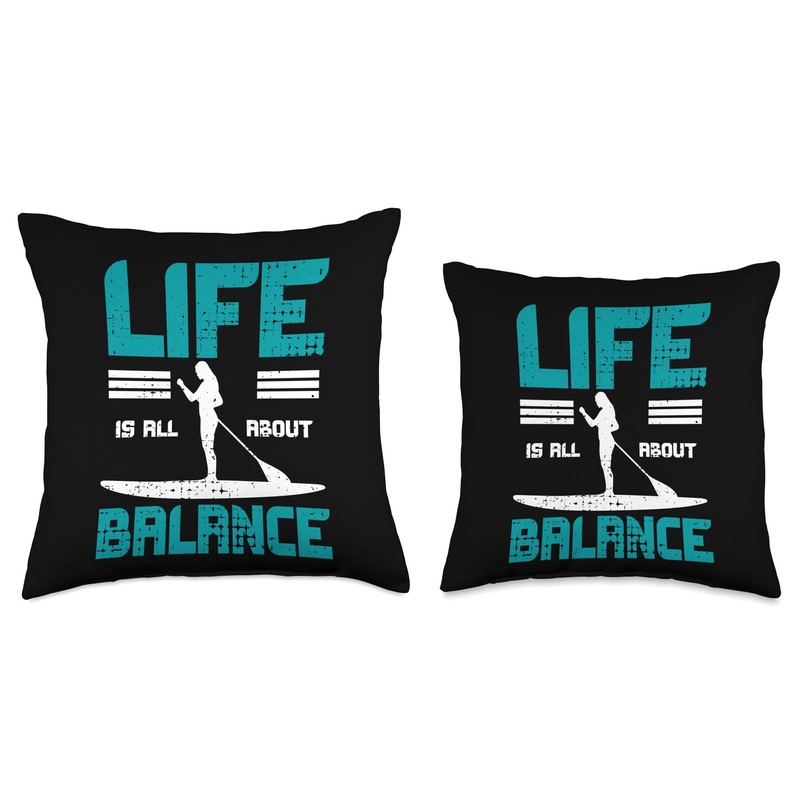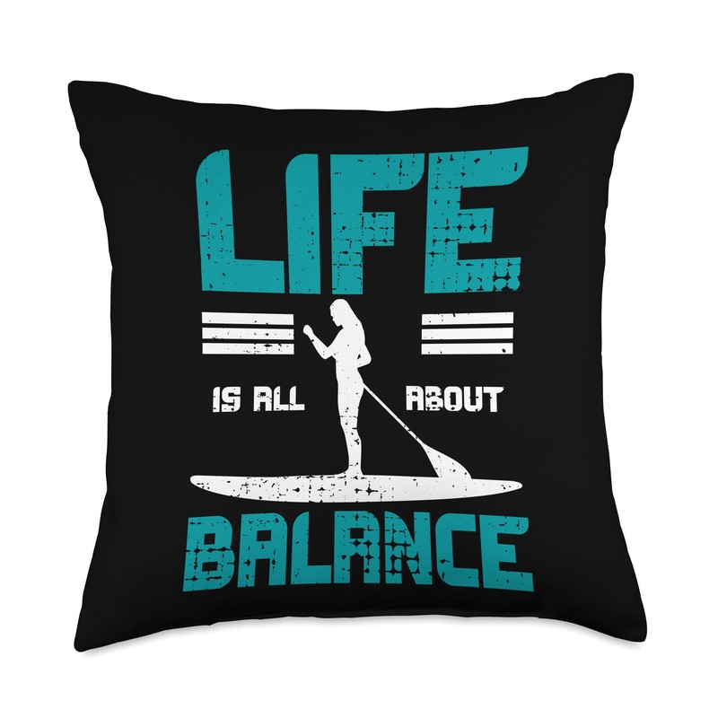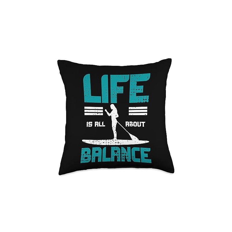 SUP Paddleboarding Gifts SUP Stand Paddle Board Find Balance Paddleboarding Throw Pillow, 18x18, Multicolor
