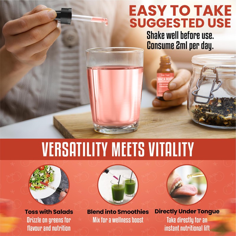 Supa-Supps Maca Root & Magnesium Glycinate 60ml - Liquid Drops for Sleep, Energy & Hormone Balance - 2000mg Maca, 1000mg Magnesium per 2ml