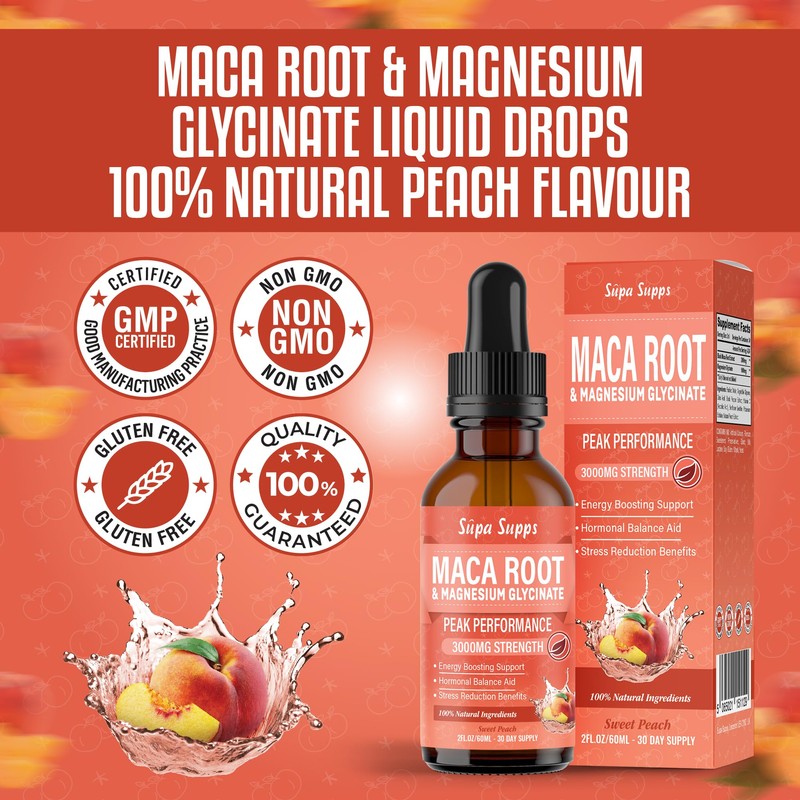 - Easy-to-Use Liquid Formula - Unlike maca capsules or magnesium glycinate powder, this liquid supplement allows for fast absorption. Simply take 2ml daily using the dropper. Pure magnesium glycinate liquid with organic maca root extract ensures a convenient, high-absorption solution.