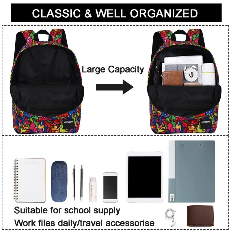 The SUPACOOL backpack is a water resistant backpack suitable for those who like casual. Its studry material and unisex designed is recommended for people often bringing their college textbooks and notebooks. Great choice as the casual day pack for shopping, travelling, outdoor sports, hiking, trekking, and cycling.