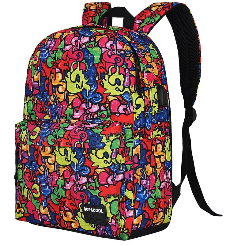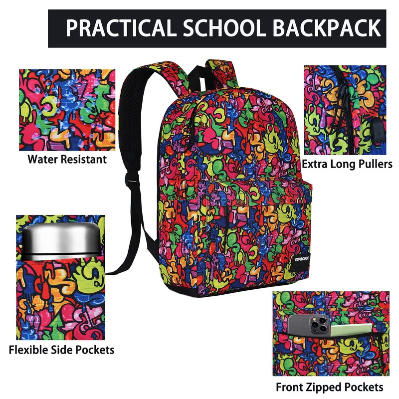SUPACOOL Kids Backpack for Boys&Girls Bookbags with USB Charging Port, School Bag Elementary Kindergarten, Daily use backpack(Graffiti)