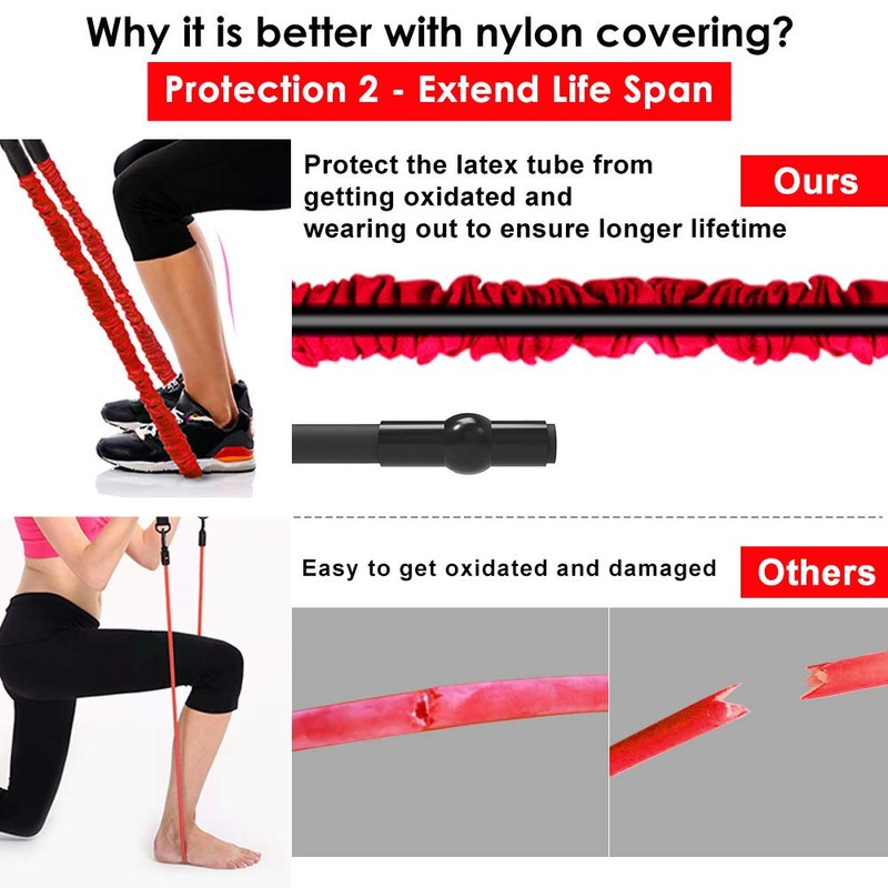 • ANTI-SNAP DOUBLE PROTECTION - Build with high quality protective Nylon sleeve and premium natural latex which prevents the resistance tube from being damaged, and provide you double protection in case the band were to snap, our elastic exercise bands serve long time and provide the maximum resistance.