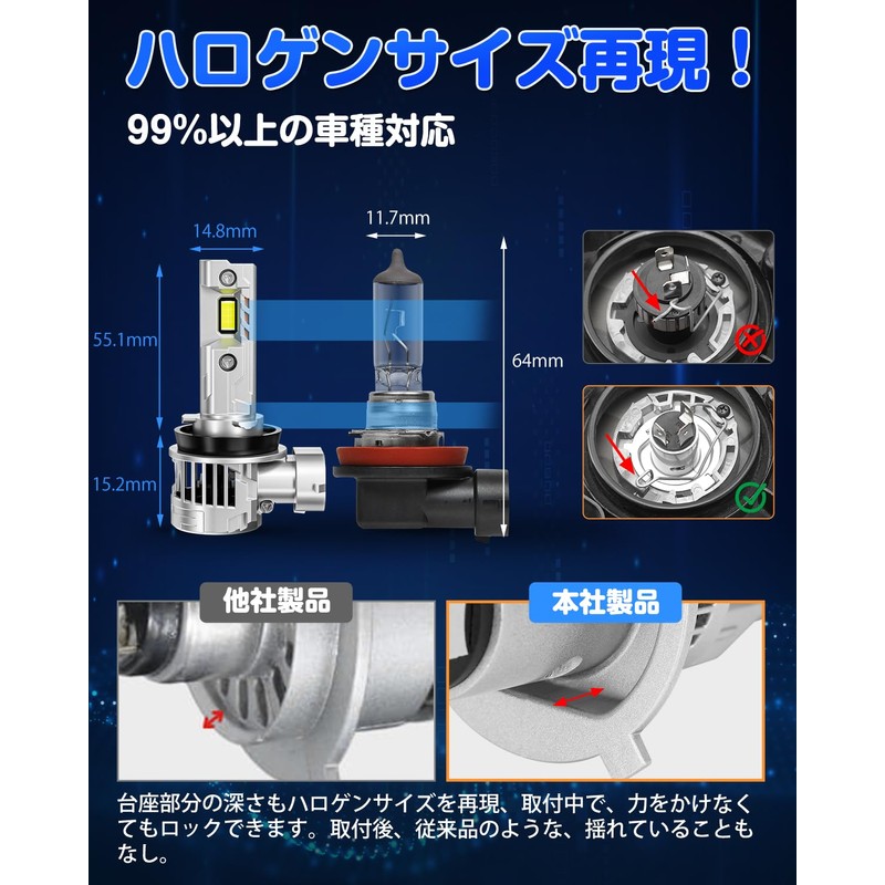 - (Vehicle Inspection Compatible) The SUPAREE h11 LED fog lamp is a halogen size, achieves almost the same light distribution as the light distribution, and the shade is placed correctly to ensure the cut line is solid, and meets new vehicle inspection standards. By reducing glare to the same level as the original lamp, there is no annoying glare around oncoming vehicles, making riding at night extremely easy and safe to drive. We have tried vehicle inspections in Japan, and cd when h8 led fogs are marked on an average of 46,000 cd. It will be more than 20 times brighter than halogen bulbs. *Please note: The standards of inspection personnel may differ depending on the location