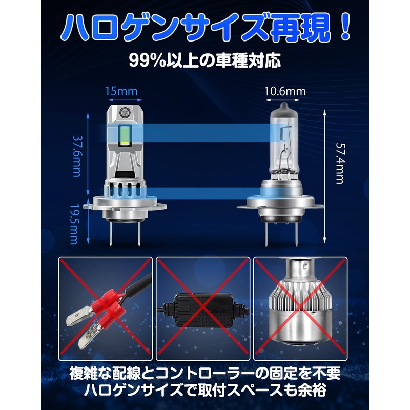 - (Compatible with PONING & Vehicle Inspections) High power model is too large and you have to pay a high cost and ask a professional installation? If you use poor quality LED headlights, the diffused light on the left and right will cause unevenness and uneven passing through car inspections? Our h7 led headlights are almost 1:1 in the original halogen size, so it is easy for beginners to install with halogen bulbs. In addition, it is made according to Japanese vehicle inspection standards, and equipped with appropriate light distribution patterns to reduce light scattered and scattered reflections, and the cut lines are solid. Almost 10 times brighter than halogen bulbs, 7 times brighter than the original vehicle inspection standards, but many vehicles have passed the vehicle inspection test. Note: Only compatible with vehicles that have the original H7 headlight model number. Vehicle inspections may differ depending on the location