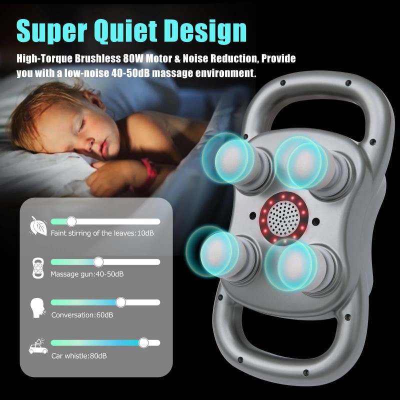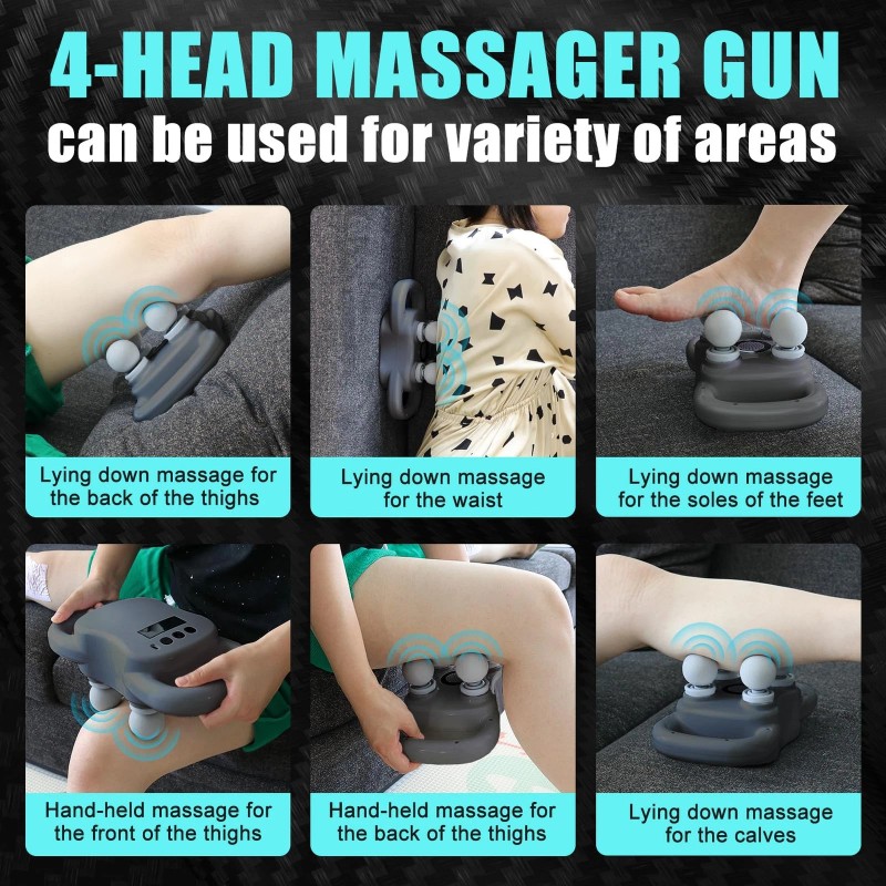 Innovative Design for Targeted Relief: Designed with precision, the 4-Heads Massager gun features four specially designed heads, each catering to specific muscle groups. Whether you need to target your back, legs, arms, or neck, this massager gun offers targeted relief, ensuring maximum comfort and relaxation.