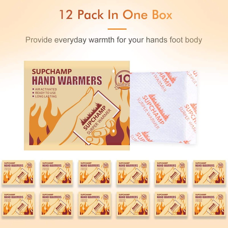 Supchamp Hand Warmers - 12 PCS Disposable Pocket Hand Warmer - Handwarmers Up to 10 Hours of Heat - Hand Heat Pads