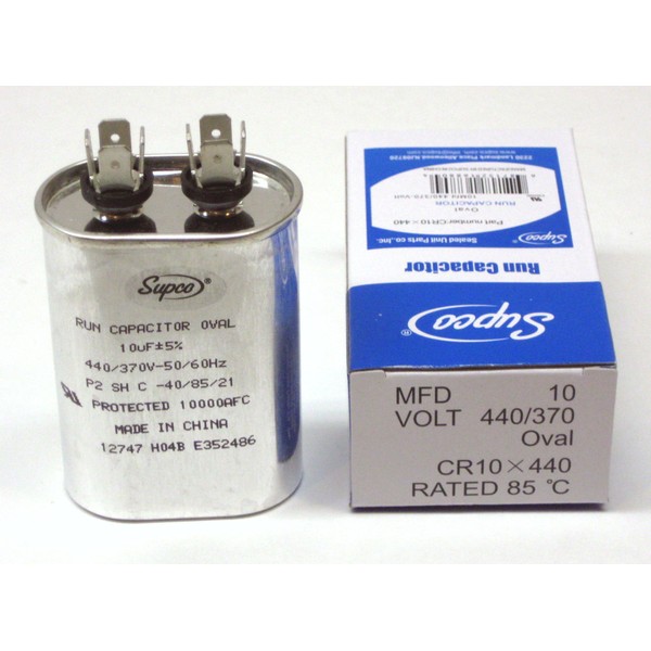 - Supco CR10X440 Oval Motor Run Capacitor 10 mfd, 440 volt