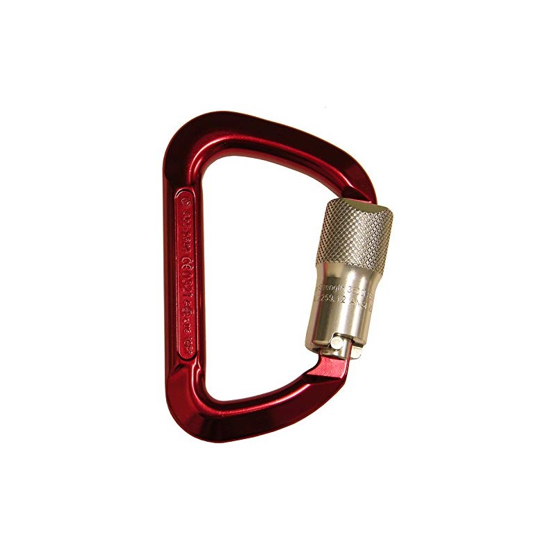 Heavy Duty aluminum carabiner used to securely attach lifelines, lanyard, energy absorbers and other items in your fall arrest system. Super lightweight at just 5.3 ounces versus a comparable double locking snaphook at 13.8 ounces. Red anodized finish and twist-lock with automatic closing mechanism. Gate strength is 3,600 pounds and complies with all current ANSI regulations.