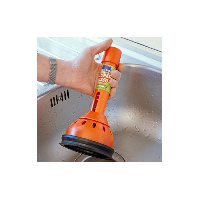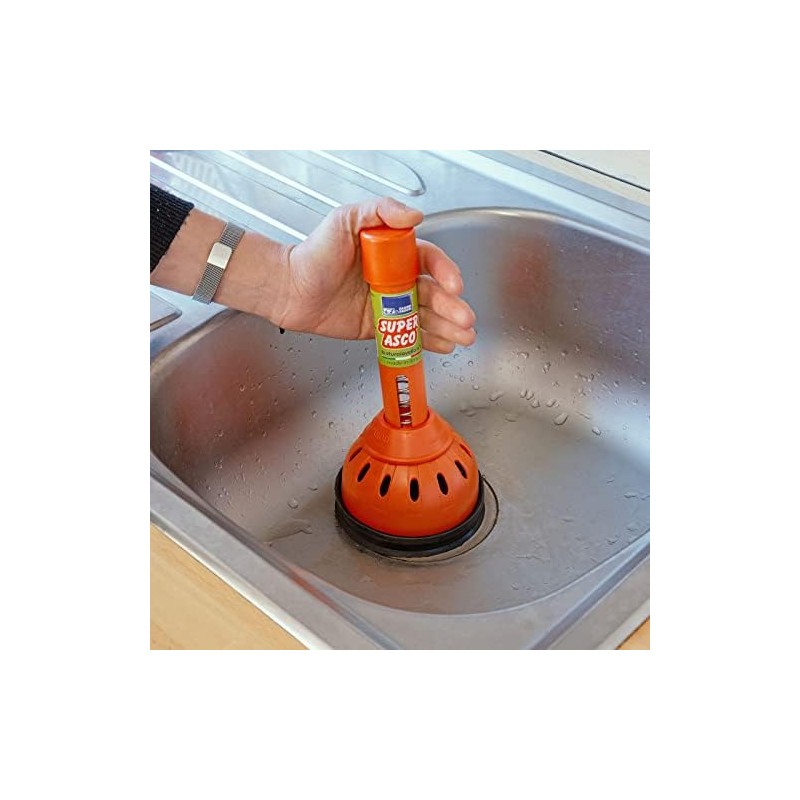 Super ASCO Plunger, Spring Sink Drainer, Double Action: Suction and Compression, Spring Plunger with Durable PVC Handle, Colour: Orange, Indestructible Plunger, Art. 101