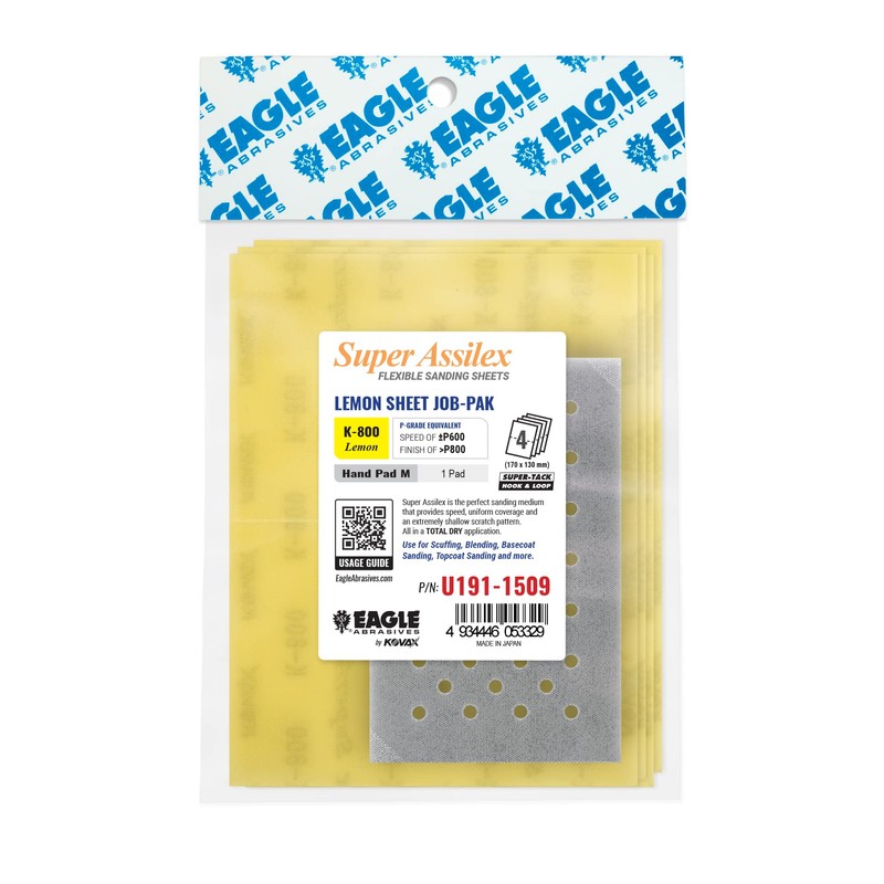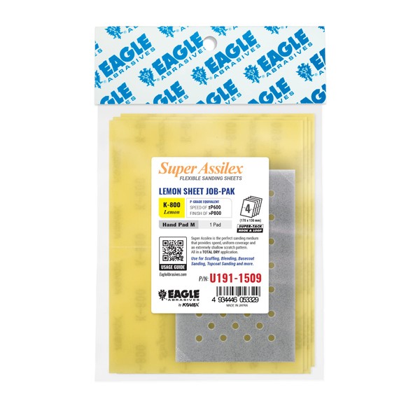 Super Assilex Flexible Sanding Sheets Job-PAK, Lemon K-800, U191-1509, 4 Sheets + 1 M Hand Pad for Half Sheets