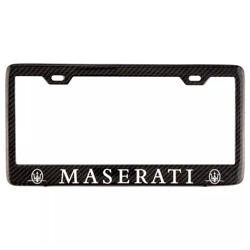 Real Carbon Fiber License Plate frame with Maserati wording and flag logo