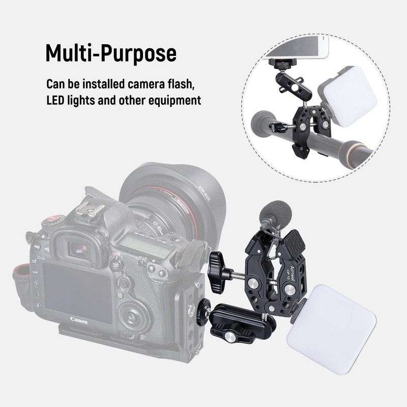 - 【Durable reliable and Upgraded Material】-Made from high-quality aluminum alloy, the Aitteel Super Clamp Mount Desk Selfie Stick Tripod Stand Gimbal Rod is built to last. It can securely hold your equipment without any wobbling or shaking, ensuring that your shots are always steady and stable,also with a protective dense rubber pad on clamp area to prevent scratches.
