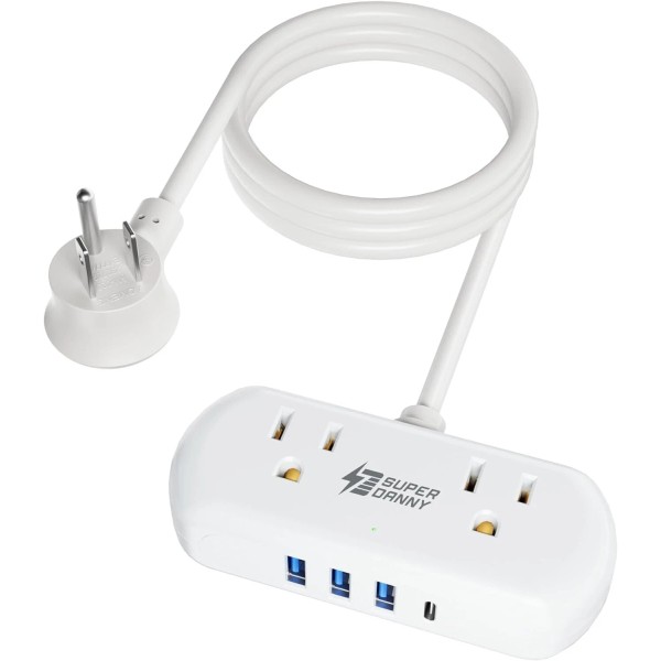 Super Danny Surge Protector Power Strip 2 Outlets 3 USB 1 USB-C Charging Ports - White - White