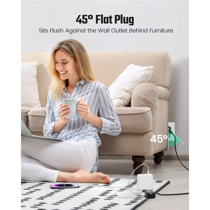- 【Smart USB Charging】3 USB-A 1 USB-C on this power bar can intelligently detect electronic devices to charge them at the fastest possible yet safe speed (USB Total Output: 3.4A/17W Shared, USB-A: 5V 2.4A Each, USB-C: 5V 3A Max).