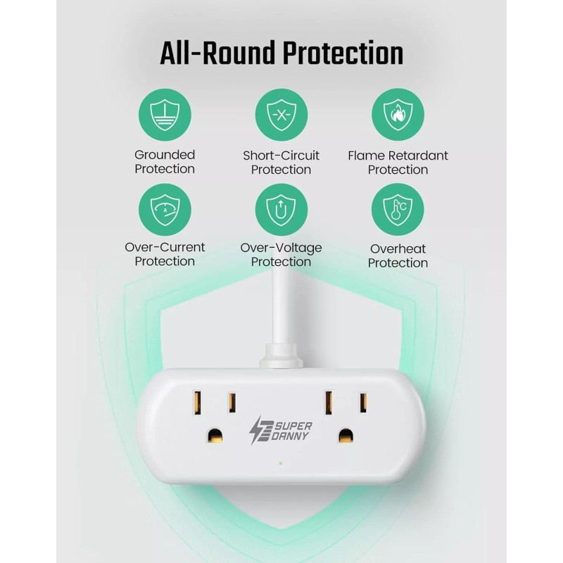 - 【Compact & Portable】SUPERDANNY travel power board has a mini size of 4.29 x 1.69 x 1.10 inches (weighs 8 oz), small enough to take to work or school with enough outlets to power up your electrical devices.