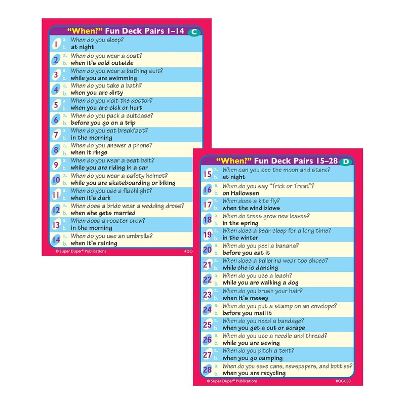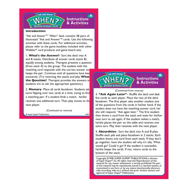 Super Duper Publications | Ask and Answer When? Questions Flash Card Deck | Educational Learning Resource for Children