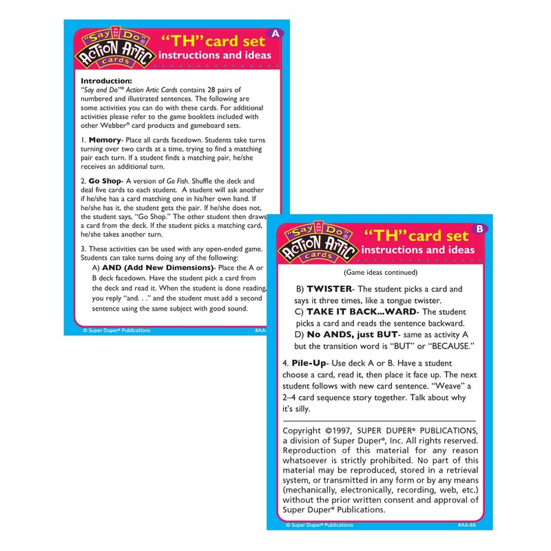Super Duper Publications | Say and Do® Action Articulation TH Sounds Fun Deck | Vocabulary and Language Development Flash Cards | Educational Learning Materials for Children