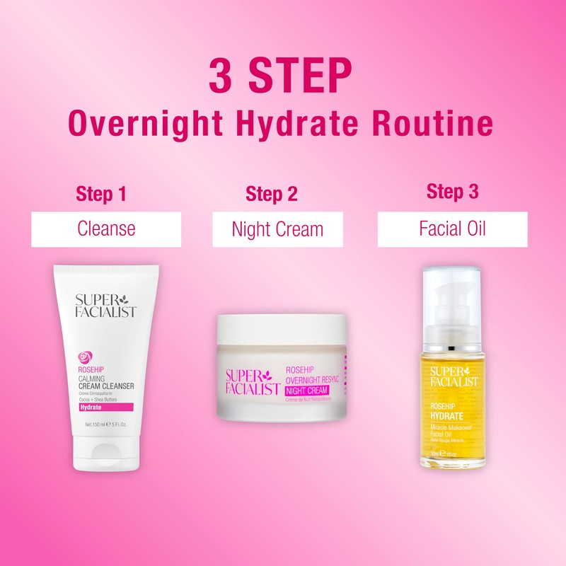 Super Facialist Rosehip Overnight Resync Night Cream - SleepSmart Complex, Moisturiser to Replenish & Rejuvenate Skin with Rosehip Oil, Shea Butter, Gentle Face Care, Vegan Friendly, 50ml
