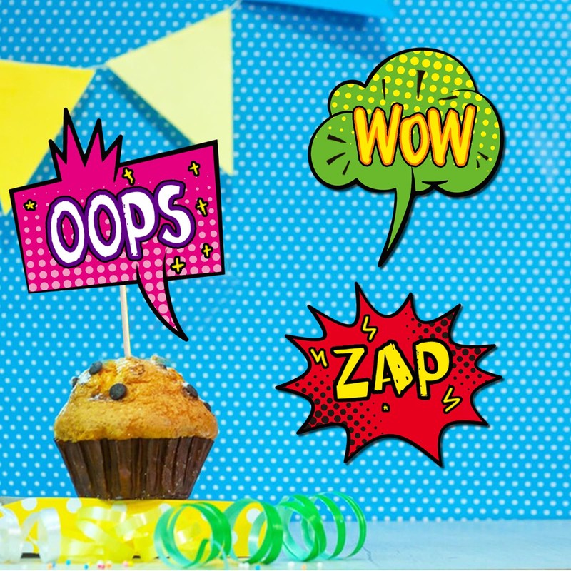 - Perfect size & Packs a Bunch -- The superhero-themed cut out shapes measure about 5.4x6.5 inches and exude a sense of comic nostalgia when placed on a party, on a classroom bulletin board or word wall, or a desk.
