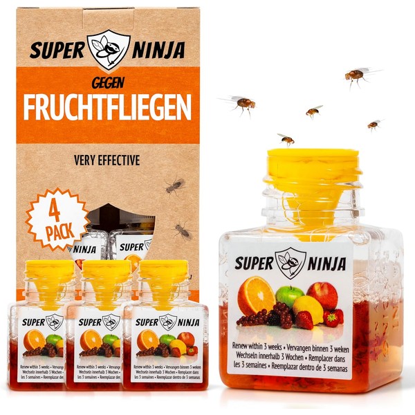 Super Ninja Fruit Fly Trap – 4-Pack Economy Set – Highly Effective Ecological Indoor Fruit Fly Trap – Pet & Child Safe – Lasts Up to 3 Weeks per Trap