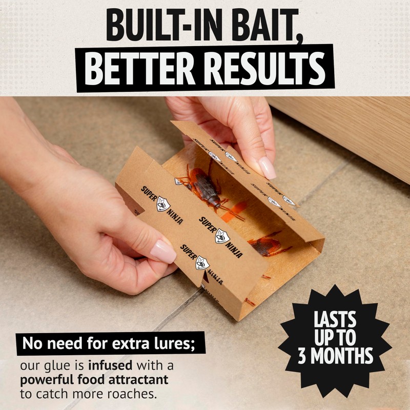 - Kills Cockroaches Fast, Where They Hide: Super Ninja cockroach killer traps are engineered with a potent food-based attractant embedded in ultra-sticky glue, drawing in cockroaches from kitchens, bathrooms, garages, and other hotspots—delivering powerful results within days.