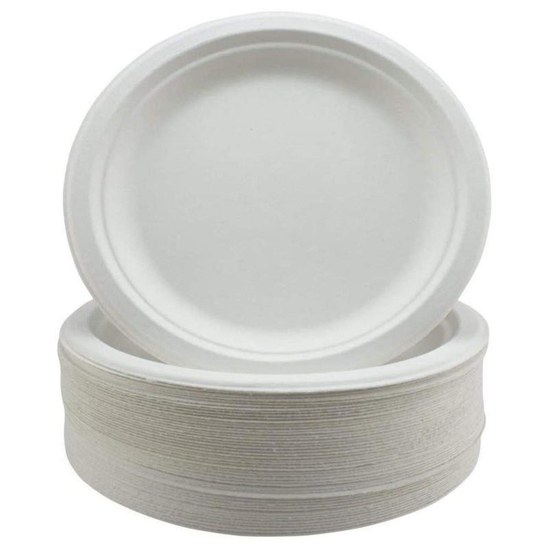 Each package includes: 50 high quality extra strength sugarcane pulp white paper (Bagasse) plates.
