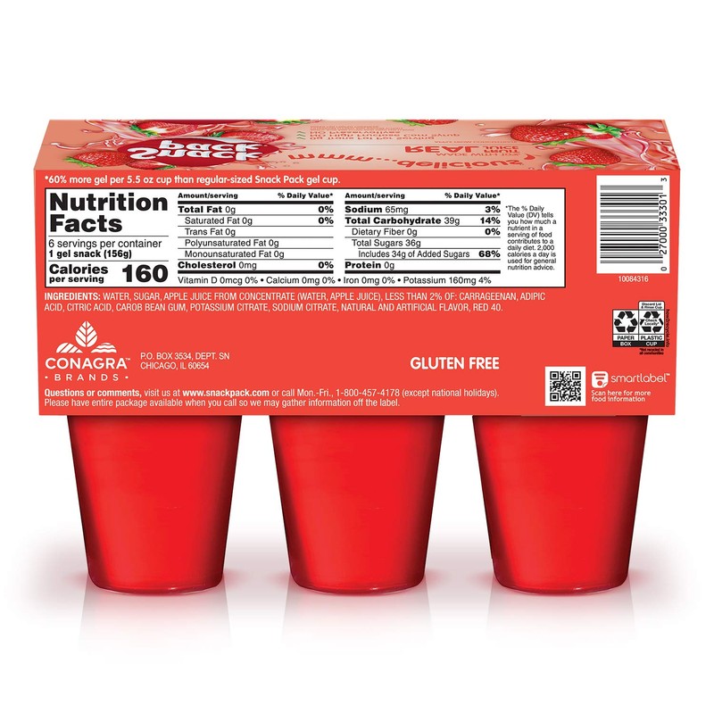 - This classic strawberry-flavored gel is an explosion of fruity flavor, with 60% more gel than regular 3.25 oz Snack Pack