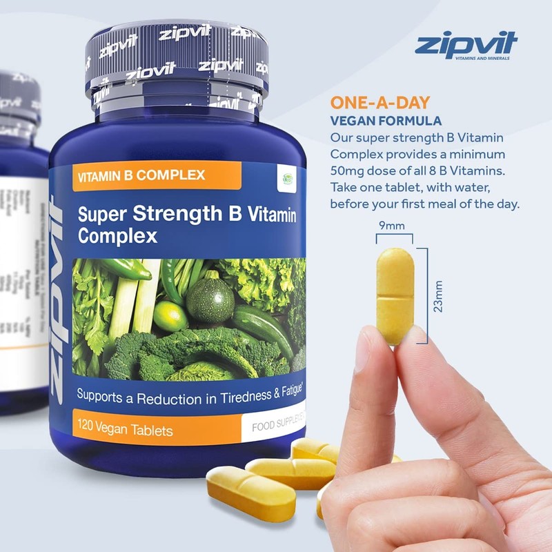 Our super strength B vitamin complex contains 50mg of essential water soluble B vitamins that need to be replaced every day through diet as they can not be stored in the body.