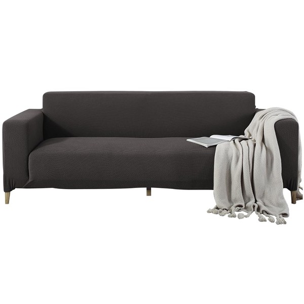 Super Stretch Textured Sofa Slipcover - Spandex Non Slip Soft Couch Sofa Cover, with Foam Sticks Elastic Straps, Washable Furniture Protector (Dark Gray)
